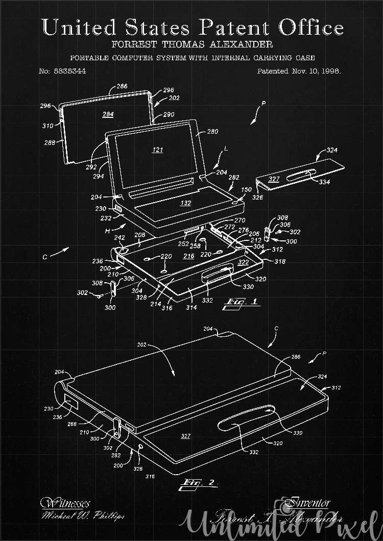 Patentzeichnung: Tragbares Computer-Docking-System (1998)